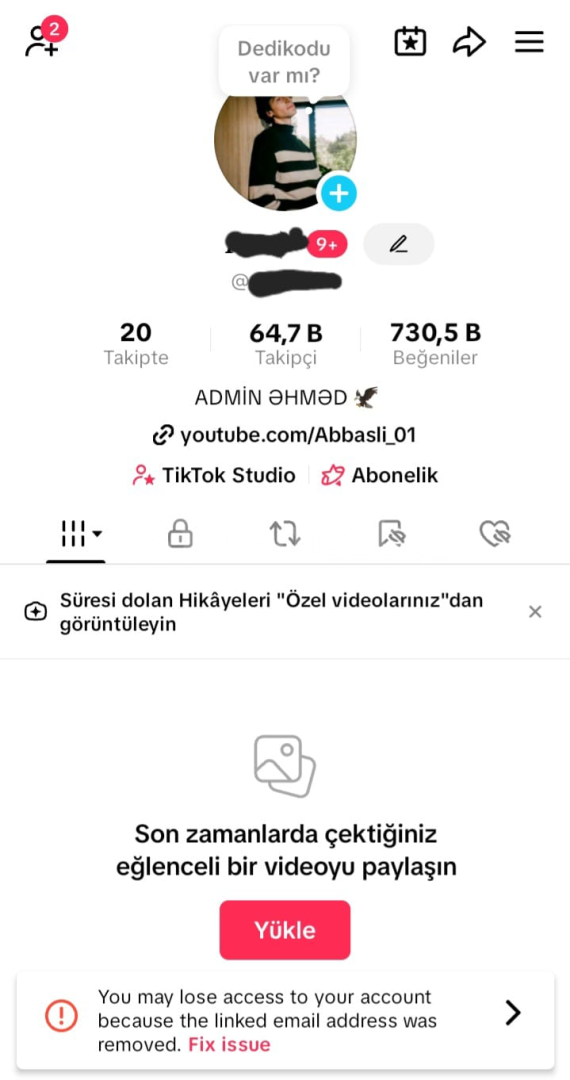 65 K TAKİPÇİLİ 730 K BEĞENİ TİKTOK HESABI