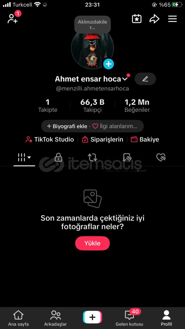 ✅ 66K FULL AKTİF KEŞFET AÇIK TİKTOK HESABI ✅Hesap sürekli keşfette günlük 200-300 arası takipçi geliyor . Hesabı satın aldığınızda dilediginiz içeriğe dönüştürüp kullanabilirsiniz. Mail adresi ve telefon değişebiliyor.. Direkt olarak satın alabilirsiniz anında teslimat sağlıyorum ..1.2 Milyon Toplam Be...