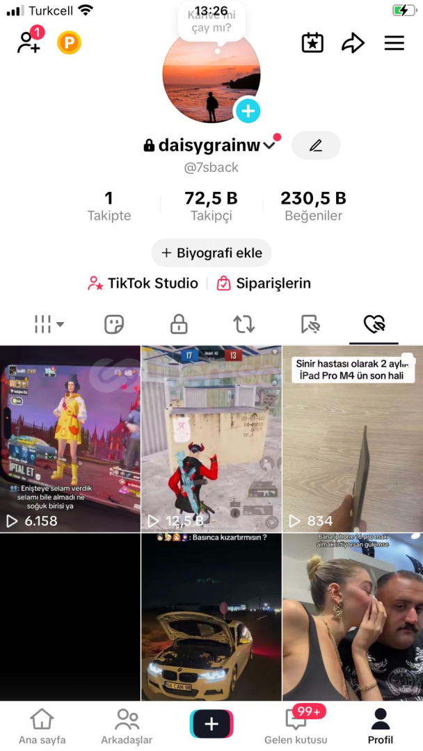 ✅72 K TAKİPÇİ HESAP✅✅KEŞFET AÇIK✅✅BEĞENİLEN VİDEOLAR✅