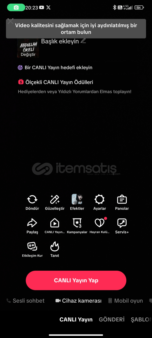 86 takipçili canlı yayın aktif