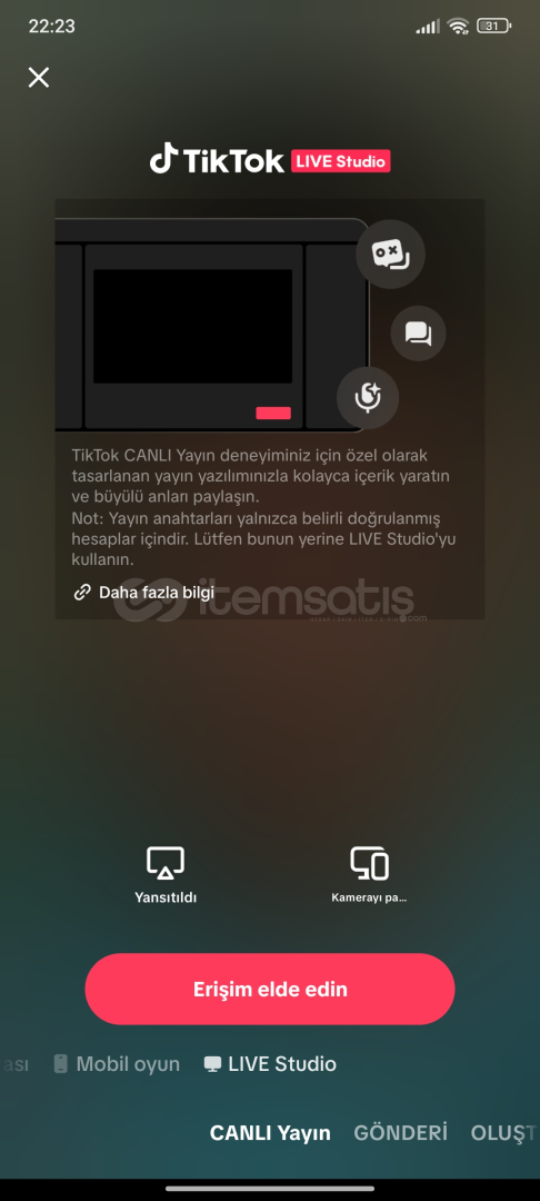 🎥 Canlı Yayın, Mobil Oyun, Live Stüdyo, TikTok Stüdyo: