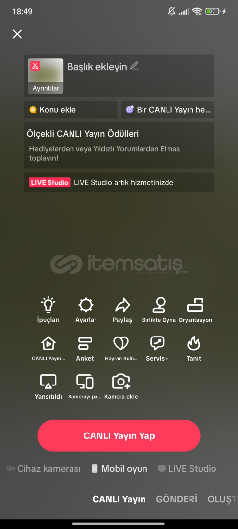 🎥 Canlı Yayın, Mobil Oyun, TikTok Stüdyo ,Live Stüdyo Açık