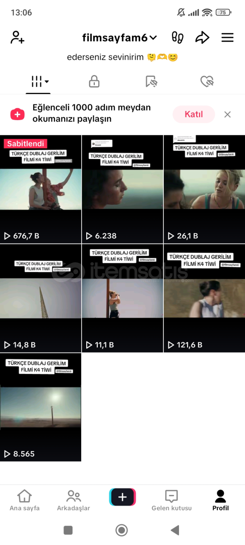 *Merhaba ilanıma hoşgeldiniz hesab 3 günlük film içerikli 965 organik takipçili 9.100 organik beğenisi vardır.