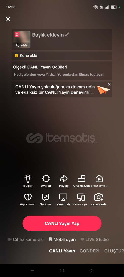 Takipçi orjinal düzenli video atılırsa daha çok kitle artar alıcısına şimdiden hayırlı olsun Canlı açık live studio açık