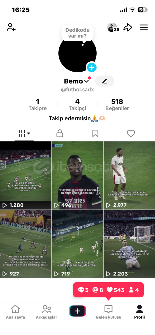 Yeni hesap aktif kullanıyor takipçisine aldanmayın sağlam hesap videolar tutuyor