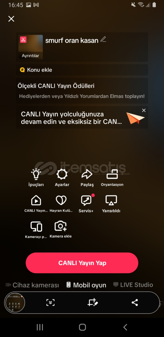 Canli yayin acik mobil oyun yayini acik live studio aktif edilebilir 100bin begenili hesap isim degisiyor eposta degisiyor
