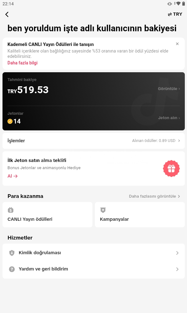 içinde 519 TL var kimlik doğrulanmadı yayın hesabi