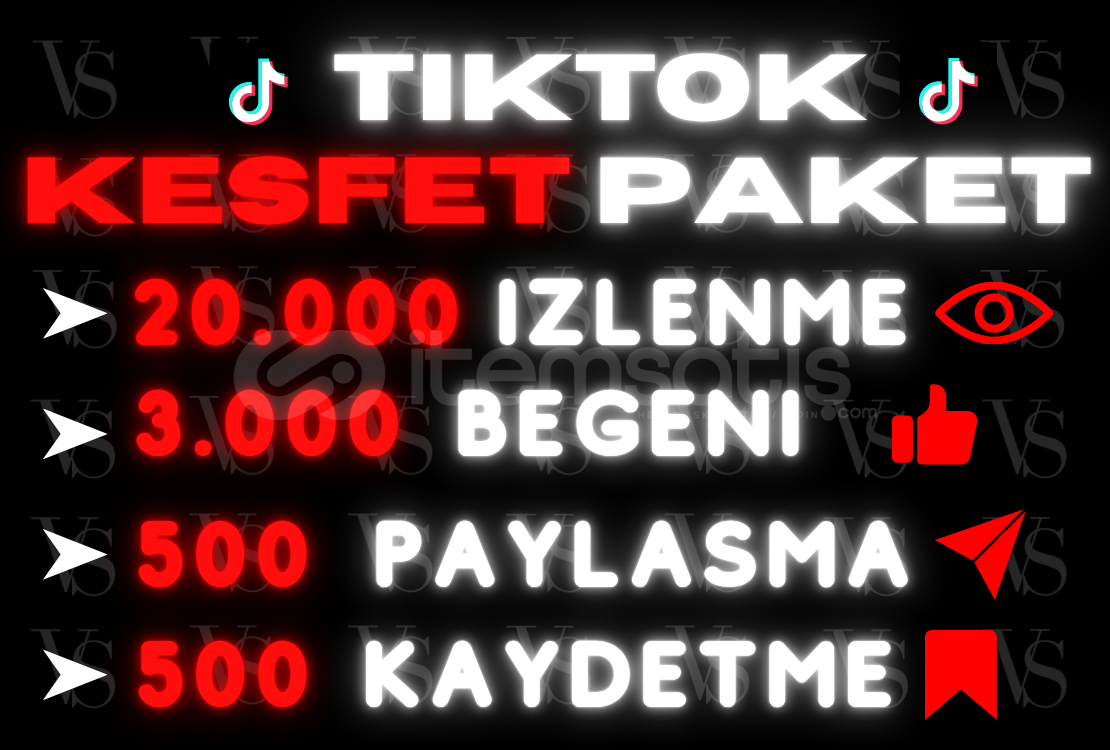 Bu pakette sunulan hizmetler ve ne işe yaradıkları alt taraftaki 5 maddede belirtilmiştir.⭐20.000 İzlenme Ne İşe Yarar: Keşfet için en temel hizmettir. İzlenme olmadan keşfet olmaz.⭐3.000 Beğeni  Ne İşe Yarar: İzlenme ile orantılı gönderilmelidir. Fazla ya da eksik gönderildiği taktirde videonuz keşfete düşmez.⭐500 Paylaşma &...