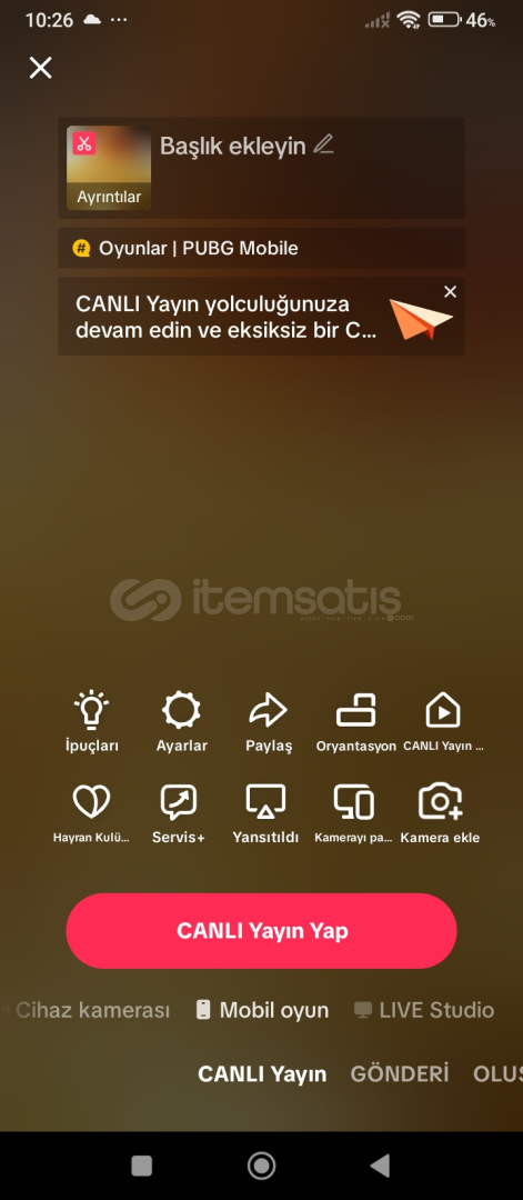 ⭐Takipçi Sayısı: 3696⭐Beğeni Sayısı: 13⭐Kurulum Tarihi: 2018⭐Bölgesi: Global⭐Yayın Durumu: Mobil Oyun Ve Live Studio Açık ⭐Kullanıcı Adı: Değişiyor⭐7 Günlük Ad: Değişiyor✨TESLİMAT BİLGİSİ✨💥Hesaplar E-posta'nıza Bağlanıp Teslim Edilir.💥 Hesaplar E-posta'nıza Bağlandıktan S...