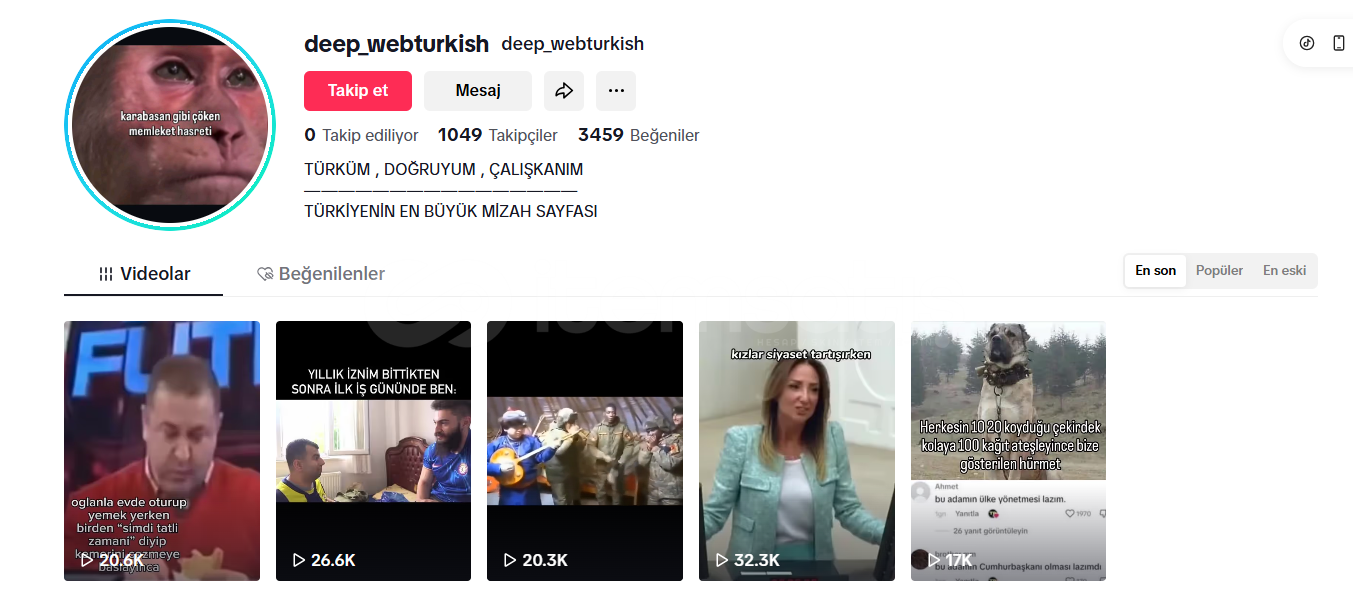 -TİKTOK MİZAH HESABIDIR KİŞİSEL ŞAHSİ HESABIMDIR SATIYORUM.