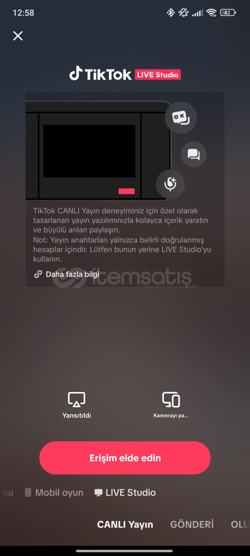 🎥 Canlı Yayın, Mobil Oyun, Live Stüdyo, TikTok Stüdyo: