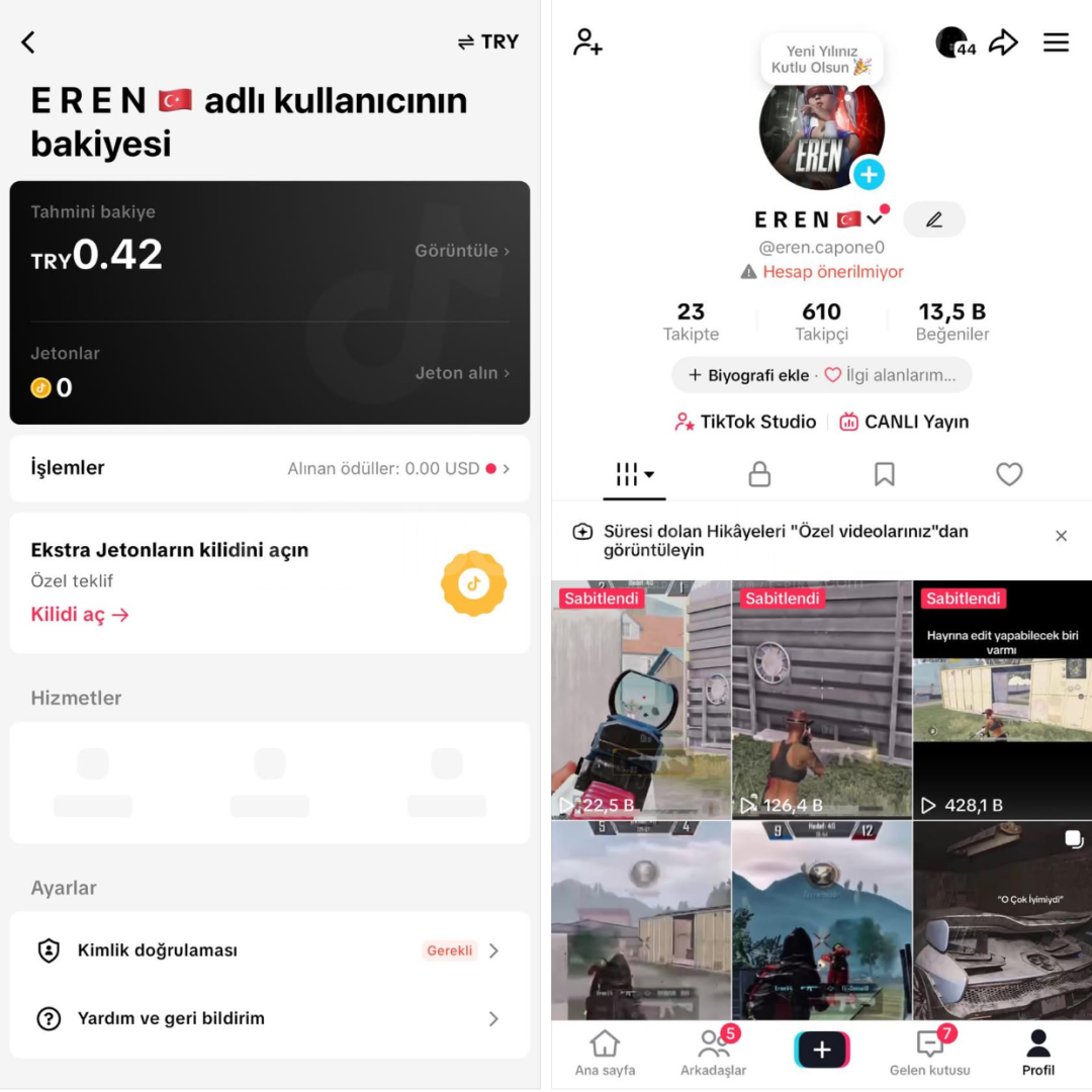 ✨HESAPMIN KEŞFETİ AÇIKTIR ✨5 HAFTALIK HESAP✨CANLI YAYIN AÇIK✨13.5 BEĞENİSİ VARDIR✨TAKİPÇİ BEĞENİ ORJİNALDİR BAKABİLİRSİNİZ✨PUGB VİDEOLARI ATILMAKTADIR