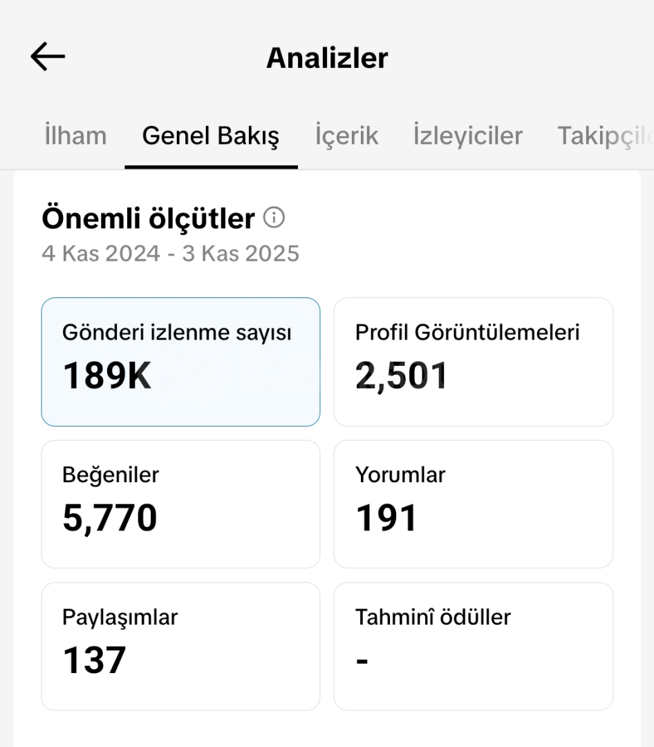 📊 Hesap Bilgileri:Takipçi: 19.400+Toplam Beğeni: 42.000+Gönderi İzlenme: 189.000+Profil Görüntüleme: 2.50...