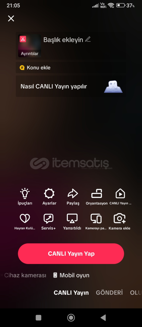 Tiktok 2456 Takipçi Ve 11,5K Beğenili HesapKullanıcı Adı DeğişiyorNormal Yayın Ve Mobil Oyun AktifKurulum Tarihi: 2020Bölgesi: GlobalHesap E-posta'nıza Bağlanıp Teslim Edilirİsteğe Bağlı Kullanıcı Adı Ve Şifre Halinde'de Teslim Edilir.İADE ŞARTLARIİADE SÜRESİ•Hesap tesliminden sonra 24 saat içinde iade talebi yapılabilir.İADE KOŞULLARI•Hes...