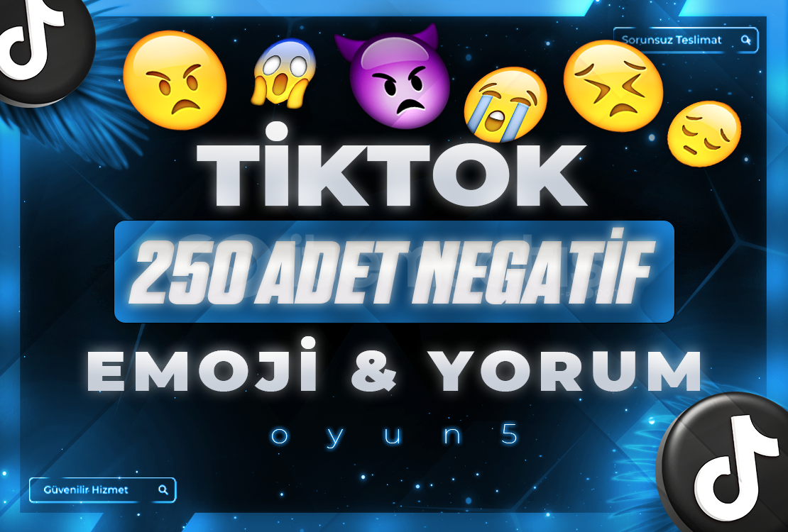 🟣 İlanı satın aldıktan sonra ilettiğiniz linke Tiktok 250 Adet Negatif Emoji Yorum gönderimi yapılacaktır.