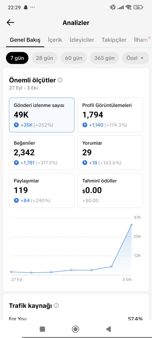 Merhaba arkadaşlar 45K orijinal organik tiktok hesabım satılıktır asla bot takipçi üye kasilimi gibi vs şeyler yoktur istatistikleri size kendimde gosterebilirim canlı yayın açıktır keşfeti açıktır 242K beğeni mevcuttur hiç bir sıkıntısı yoktur lütfen sadece ciddi alıcılar DM atsın.