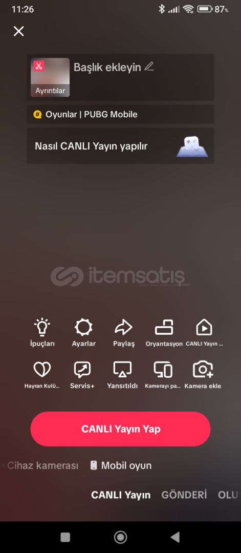 Tiktok 7617 Takipçi Ve 31,4K Beğenili HesapKullanıcı Adı DeğişiyorNormal Yayın Ve Mobil Oyun AktifKurulum Tarihi: 2019Bölgesi: GlobalHesap E-posta'nıza Bağlanıp Teslim Edilirİsteğe Bağlı Kullanıcı Adı Ve Şifre Halinde'de Teslim Edilir.İADE ŞARTLARI İADE SÜRESİ •Hesap tesliminden sonra 24 saat içinde iade talebi yapılabilir.İADE KOŞULLARI •...