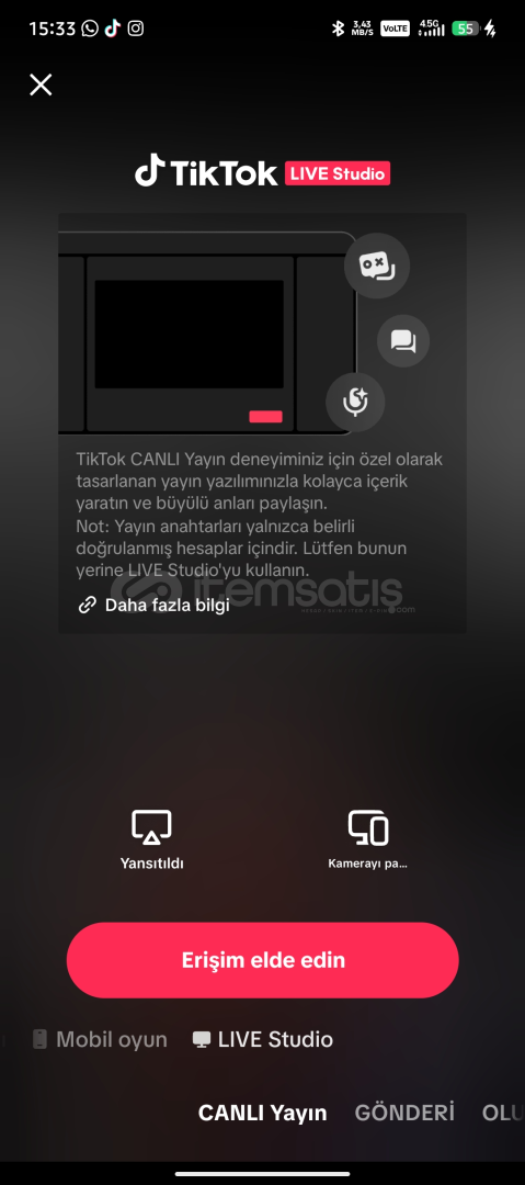 Tiktok hesabı 84 takipçili canlı yayın ve live studio vardır 🙏🏻