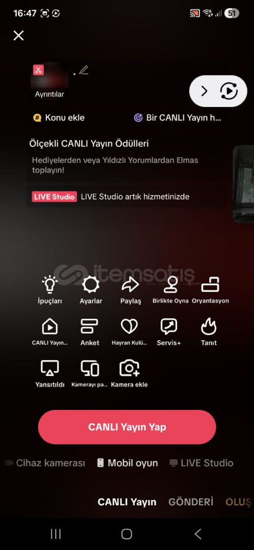 Keşfet açıkLive stüdyo açıkAlıcıya devir yapılır