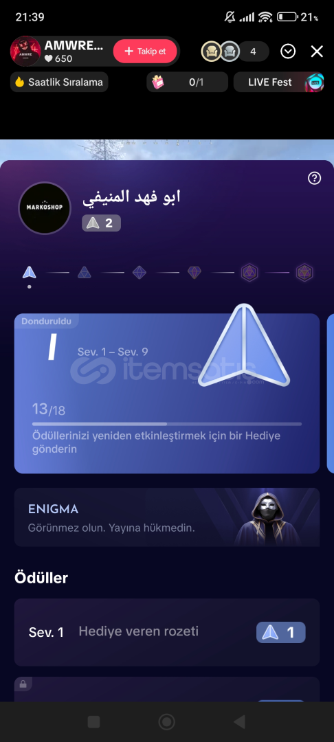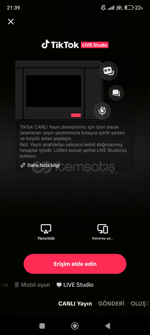 🎥Canlı yayın, mobil oyun özelliği aktiftir. LİVE studio açılması için 25 dk yayın yapmanız yeterlidir.