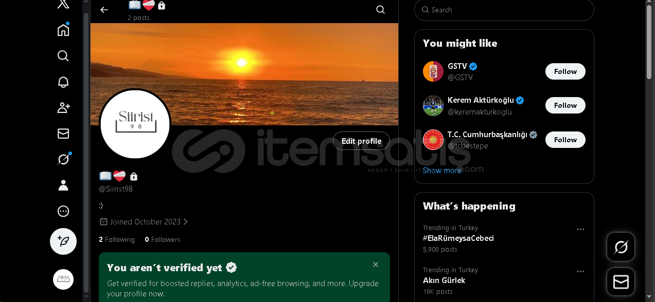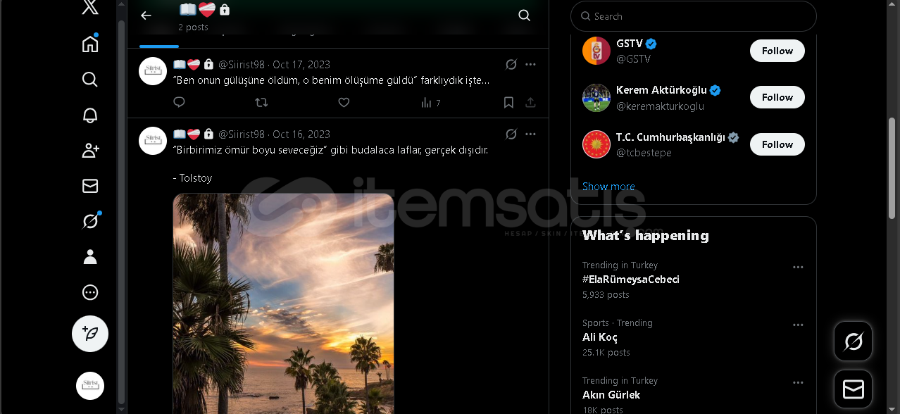 2023 EKİM KAYITLI TWİTTER (X) HESABI VERİLECEKTİR2 ADET POSTU MEVCUTTUR, 1 GÖRSEL 1 TEXTSAD ÖZLÜ SÖZLER PAYLAŞMIŞTIRPASİF HESAPTIR YAKLAŞIK 2 YILDIR KİMSE KULLANMAMIŞTIRHESABI SİZİN MAİLİNİZE GEÇİRECEĞİZÖMÜRLÜK ASLA PB YEMEZBEN AKTİF DEĞİLKEN DAHİ SATIN ALABİLİRSİNİZ MÜMKÜN OLDUĞUNCA HEMEN VERİYORUM HESABI