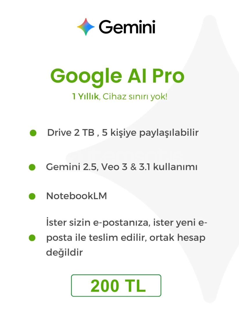 Gemini Pro - Kişisel Hesabınıza Yıllık Üyelik