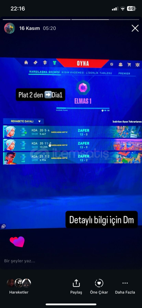 Selamlar 12 yıldır fps oyunlarının içindeyim . Valorantı 4 yıldır oynuyorum peek rankım radiant şuan aktif immo 1 az oynuyorum boost yaptığım için. Hızlı güvenilir ve uygun fiyata hesaplarınız boostlanır .Detaylı bilgi için DM