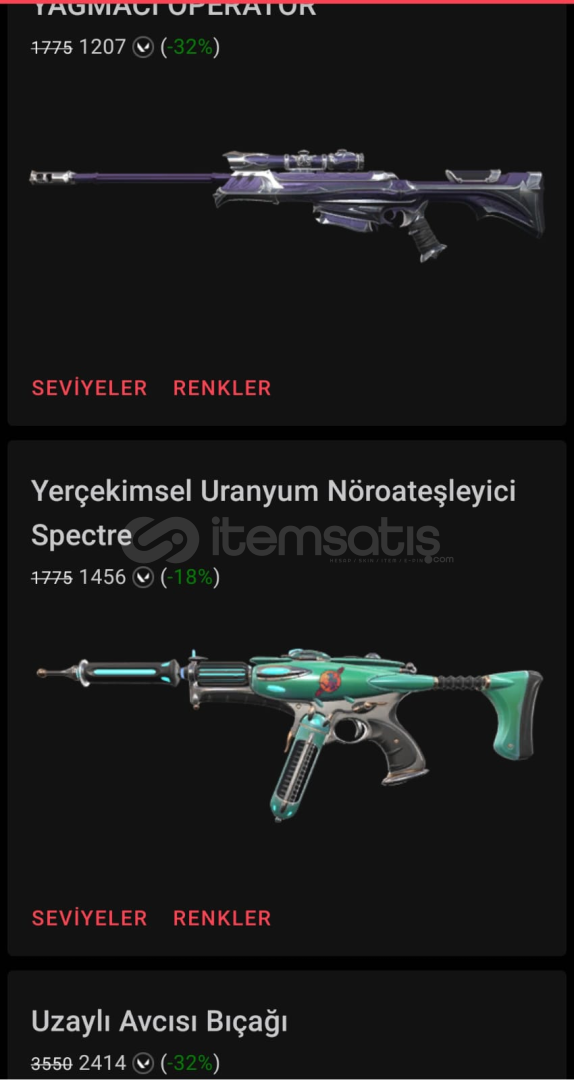 Farklı skin farklı oranlar için mağazaya göz atabilir bana yazabilirsiniz