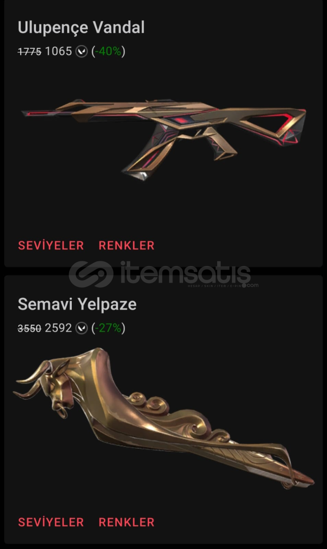 Farklı skin farklı oranlar için mağazaya göz atabilir bana yazabilirsiniz
