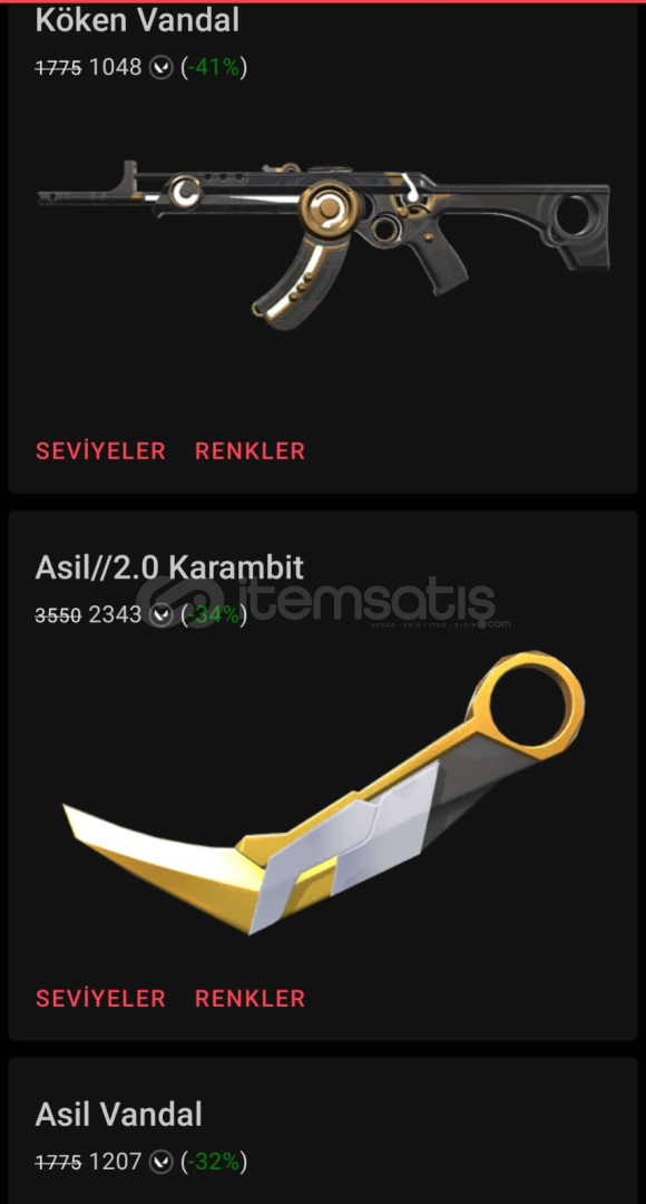 Farklı skin farklı oranlar için mağazaya göz atabilir bana yazabilirsiniz