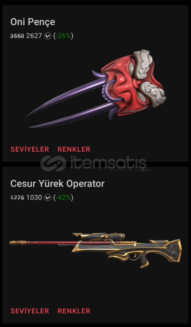 Farklı skin farklı oranlar için mağazaya göz atabilir bana yazabilirsiniz