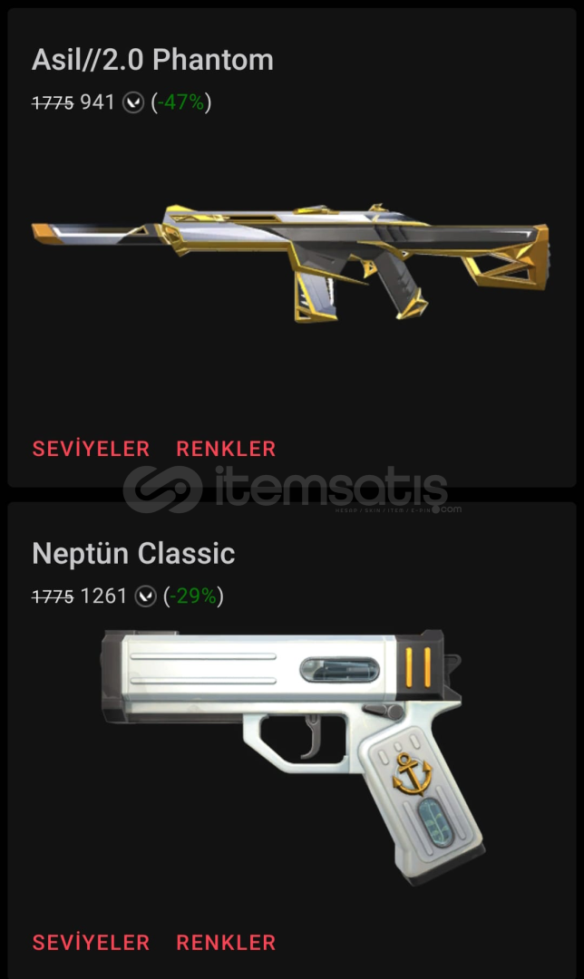 Farklı skin farklı oranlar için mağazaya göz atabilir bana yazabilirsiniz
