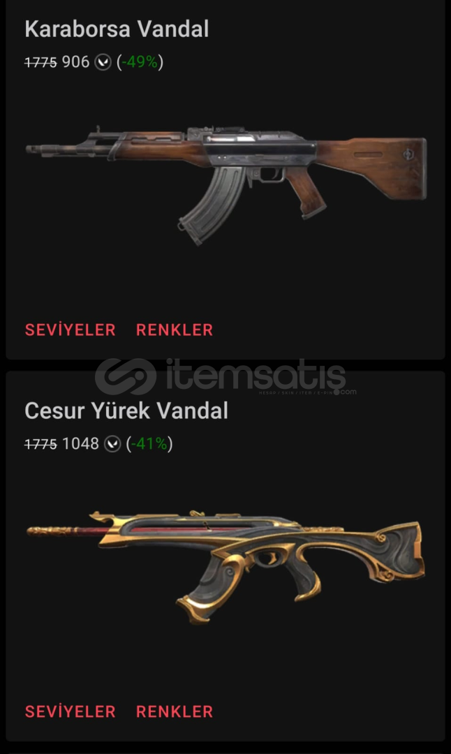 Farklı skin farklı oranlar için mağazaya göz atabilir bana yazabilirsiniz