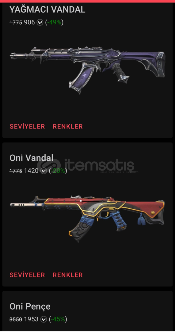 %49 yağmacı vandal%45 indirimli oni pençe%20 indirimli oni vandalMail onaysızdır yani ilk mail sizin olucak kendi mailinize aktarabileceksiniz hesabıHesap tr sunuculudur(bütün hesaplarımız tr sunuculudur)kullanıcı adı:şifreOlarak teslim edilecektir133 başarılı işlemle güvenilir mağazaFarklı skin farklı oranlar için mağazaya göz atabilir bana yazabilirsiniz