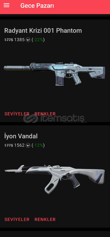 ⚡ %22 RADYANTKRİZİ PHANTOM  | %12 İYON VANDAL | % 14YİTİK HANÇER ⚡