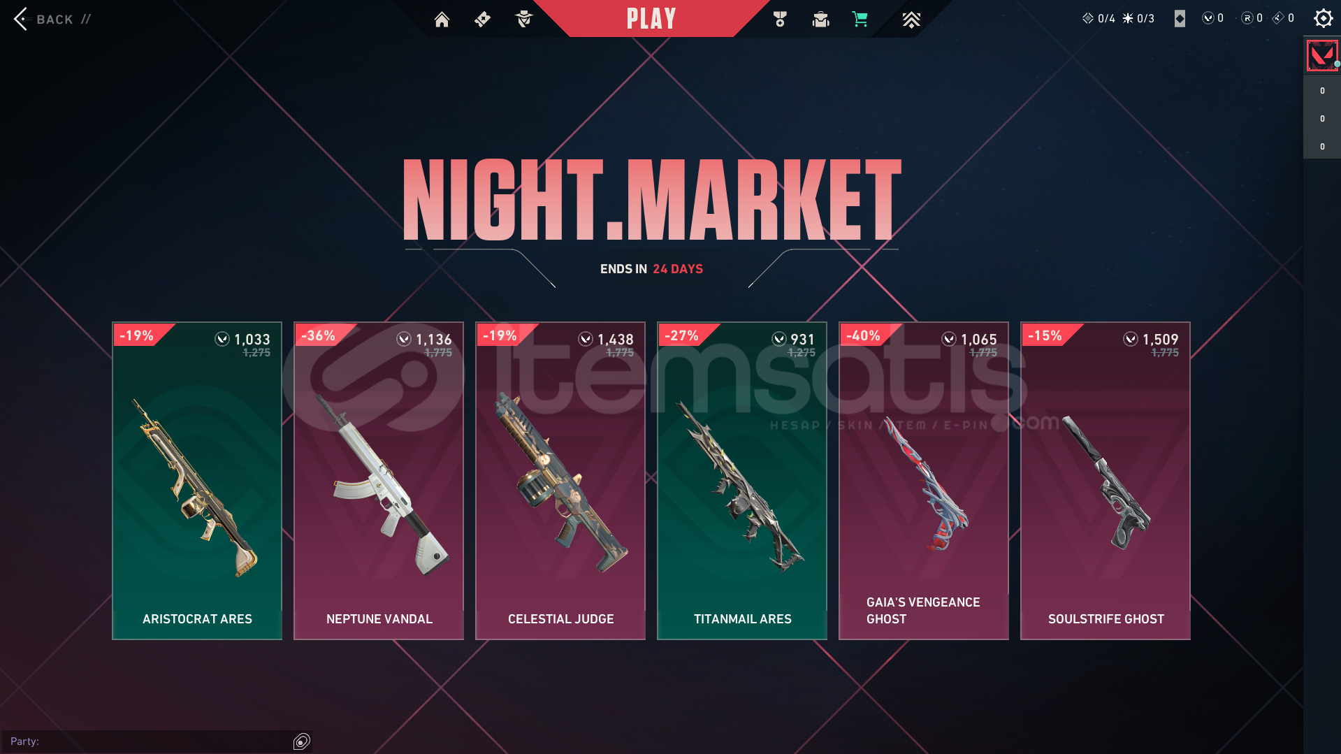 -Hesabın gece pazarında Neptün Vandal - Gaıa Ghost - Ruh Azabı Ghost mevcuttur
