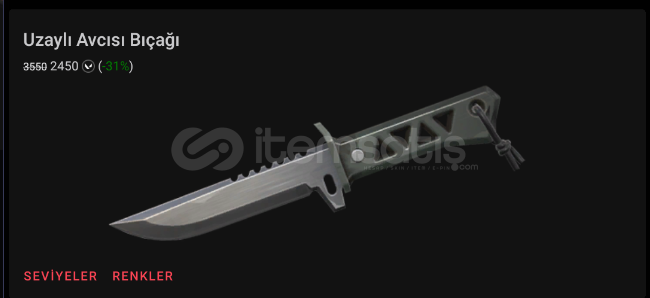 Hesapta gece pazarında UZAYLI AVCISI BIÇAK 2450 VP ye mevcuttur . HESAPTA SKİN YOKTUR, GECE PAZARI HESABIDIR!!