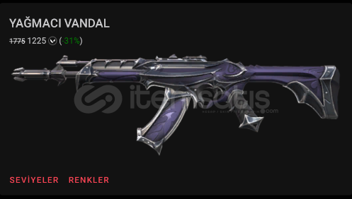 Hesapta gece pazarında YAĞMACI VANDAL 1225 VP ye mevcuttur .Hesaplarımız otomatik teslimattır, aktif olmasam da satın alabilirsiniz. Hesaplarda e posta onayı yoktur, verdiğimiz bilgilerle e posta ve şifresini istediğiniz gibi değiştirebilirsinizBazı hesaplar temel eğitimde başlayabilir.Gece pazarında istediğiniz skinler varsa ya da sorularınız var ise mesaj atabilirsiniz.PROFİLİMDE ...