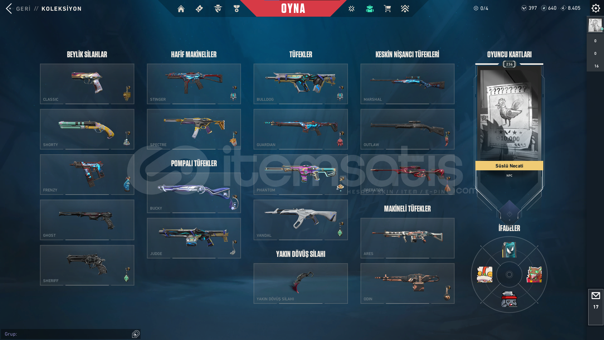 ve bunlar gibi bir sürü skin de hesapta dahil