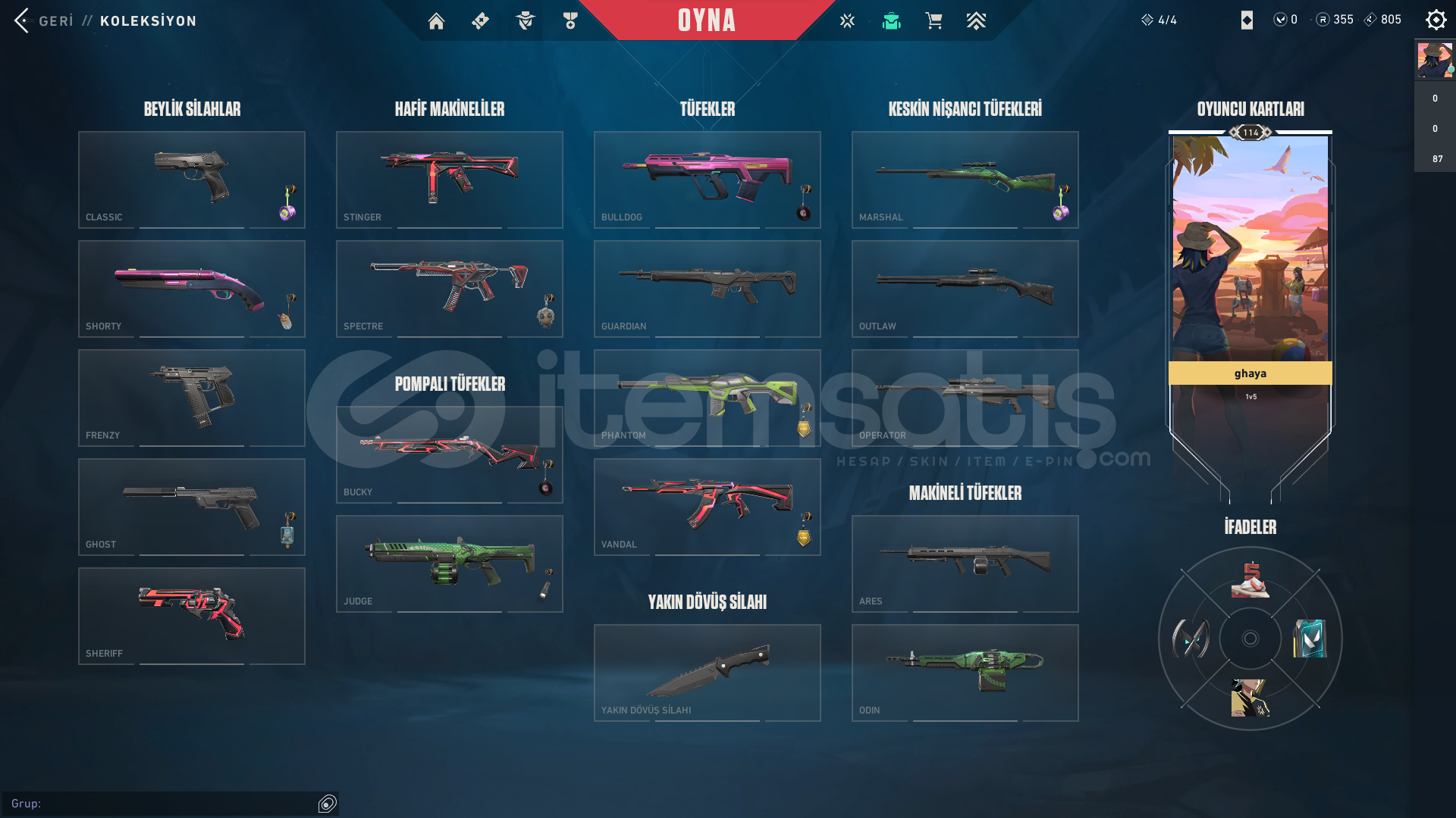 hesapta neredeyse tüm silahlarda skin bulunmakta
