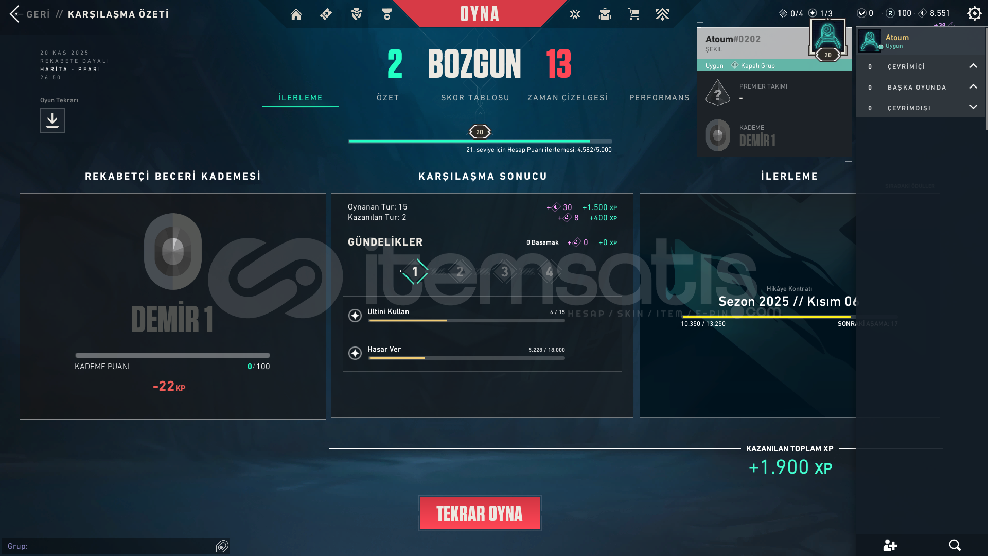 TR - DEMİR 1 0 KP - MAİL ONAYSIZ - DÜŞÜK MMR