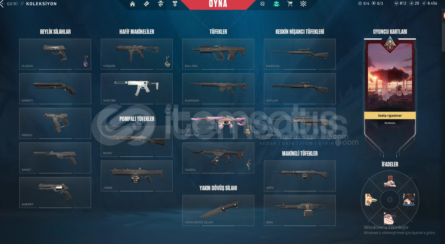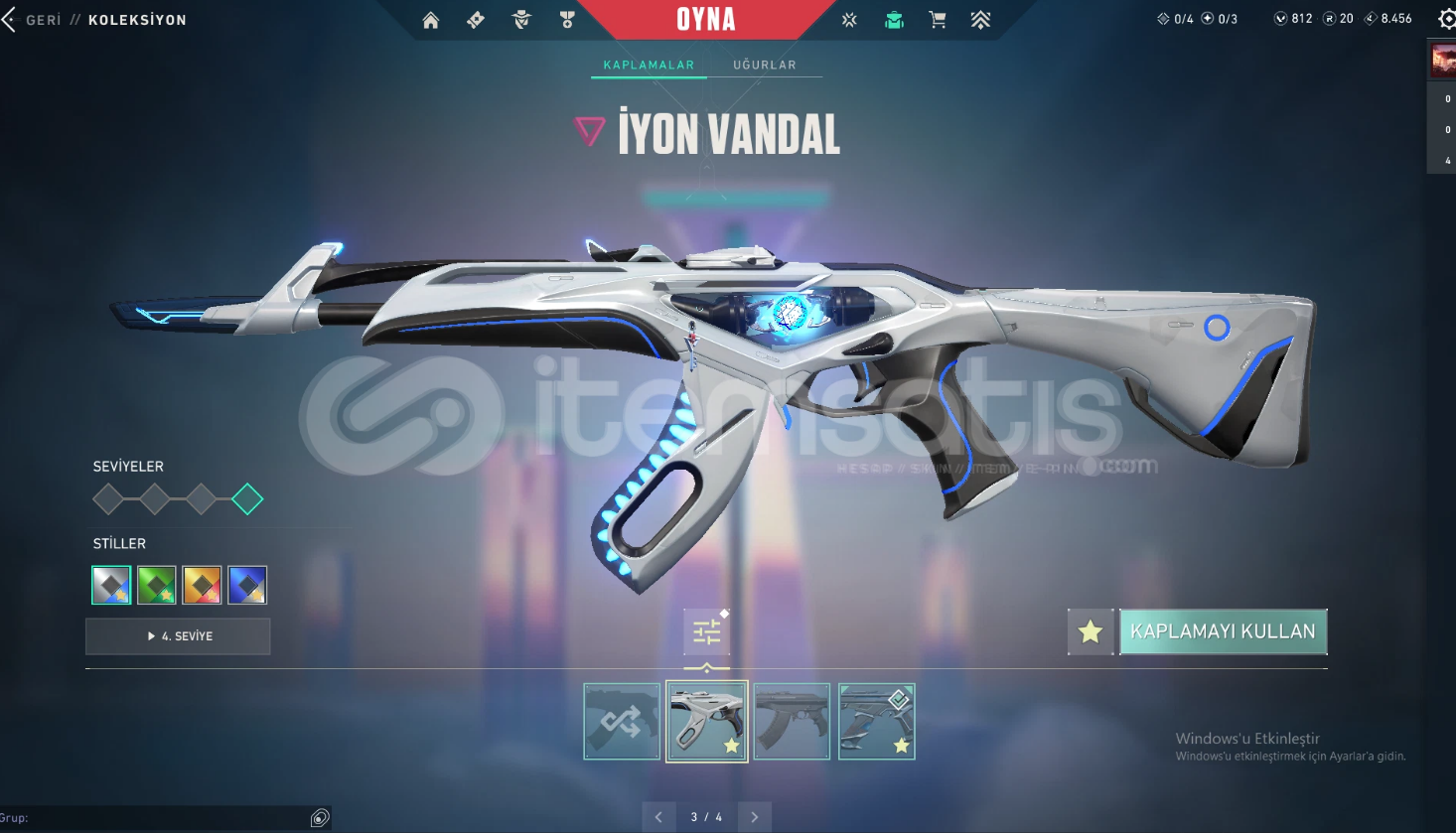 Bölge: TRSeviye: 43Kademe: Gümüş 1VP: 812Radyanit: 20Skinler;Kuronami Vandalİyon VandalSırçiçeği PhantomOni PhantomNeptün Spectreve 1 Adet Battle Pass SkinSatın alıp tüm işlemleri bitirip hesabı üstünüze aldığınız zaman siparişi onaylayıp bize destek olmak için alışveriş sırasındaki memnuniyetiniz hakk...