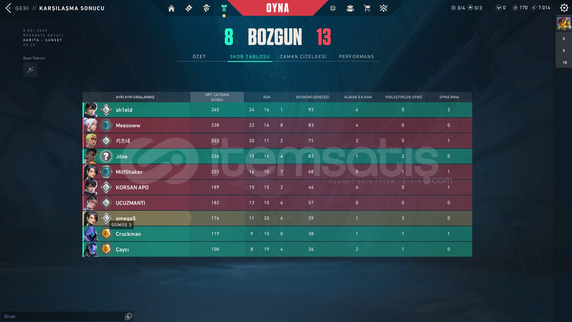Merhabalar hesap TR sunucudur.Anında teslim edilecektir.Hesap tamamen mailli ve doğrulamalı bir şekilde teslim edilecektir. Bu da demek oluyor ki hesabın hem e-posta kontrolü hem de Riot Games’e ait güvenlik adımları sizin kontrolünüze geçecektir. Satın alma işlemi tamamlandığında sistem bana anlık SMS bildirimi gönderir ve bu sayede hemen siteye bağlanarak sizinle iletişime geçerim. Genellikle birkaç dakika içinde yanıt vererek teslimatı gerçekleştiriyorum. Hesap Özellikleri: E-posta (mail) tamamen alıcıya devredilir Hiçbir üçüncü şahısla paylaşılmamış Şüpheli etkinlik, 3. parti yazılım geçmişi yok Teslimat süresi: Ortalama 5–15 dakika İlanla ilgili aklınıza takılan her konuda bana İtemSatış mesaj sistemi üzerinden ulaşabilirsiniz. Tüm sorularınıza içtenlikle yanıt verecek, güvenle alışveriş yapmanız için elimden geleni yapacağım. Satıcı panelimde yer alan satıcı doğrulama rozetim ve önceki ilanlarımdan aldığım olumlu yorumlar, güvenli ticaret konusunda sizlere referans olabilir. Hesap devrinden sonra ihtiyaç duymanız halinde kısa süreli destek vermeye de hazırım. Oyun içindeki bazı ayarlamalar, e-posta onayları ya da güvenlik adımları hakkında takıldığınız yer olursa yazmanız yeterlidir. Temiz, güvenli ve hızlı teslimat garantili Valorant hesabı satın almak istiyorsanız doğru ilandasınız. Siparişinizi oluşturun, birkaç dakika içinde yeni hesabınıza kavuşun! Bu ilanı satın aldığınızda bilmeniz ve yapmanız gerekenler, • Sizlere hesaba giriş kodunuzu gönderdiğimizde hesaba tamamen erişmiş olacaksınız. • Hesaba girdiğiniz zaman lütfen hesabın e-posta adresini ve şifresini değiştirin ayrıca Sosyal Medya bağlantılarını (Google, Facebook vb.) kesin. • Hesabın biletlerini kontrol edin, açık bilet olursa bize bildirin. • VALORANT üzerinden giriş yaptığınızda hesabın tüm arkadaşlarını silin. • Tüm maddelerin satın alındığı andan itibaren yapılması ve ekran kaydı alınması zorunludur, aksi takdirde geri alma işlemleri sizin yaptığınız düşünülür ve para iadesi yapılmaz. • Satışı yapılan ilan aynı satış yerinde satış yapamaz aksi takdirde destek verilmez. Sorumluluk hesapta son satış yapan kullanıcıya aittir. Unutmayın, hesaplar sizden geri alınabilir. Bu durumda hesabın sizden alındığına dair kanıt göstermek zorundasınız. • Sadece VALORANT Destek sitesindeki Bilet mailleri bizler için kanıt sayılır. Mailde sizden Bilet ile geri alındığına dair bir bilgi var ise paranız iade edilir. Aksi takdirde bu işlemi sizin yaptığınız kabul edilir ve paranız iade edilmez. • Hesap sizden geri alındığında bir üstte yazan madde uygulanmalıdır. Uygulanmadığı takdirde sizden geri alınmış olsa bile para iadesi yapılmaz! • Riot Politikalarına aykırı bir durum tespit edilirse iadeniz gerçekleştirilmez! • Bu ilanı satın aldığınızda tüm açıklamayı okumuş ve kabul etmiş sayılırsınız.