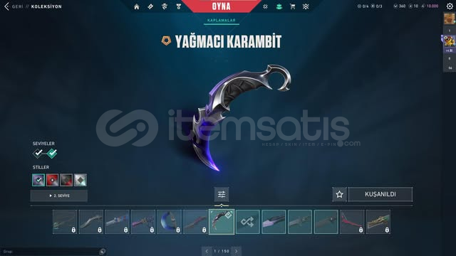 Örn; 4 renk paketi + 5 yükseltme varsa bile 1 skin olarak kabul edilecektir.