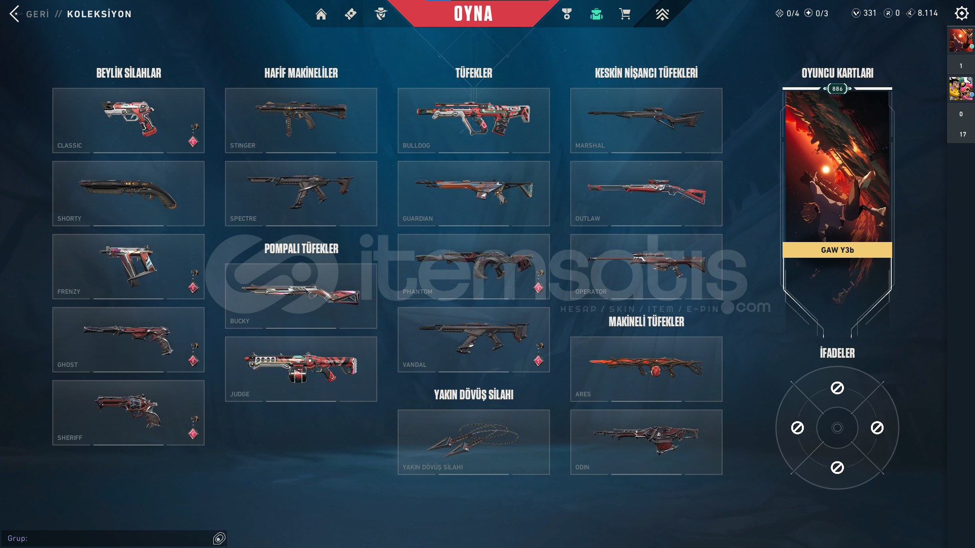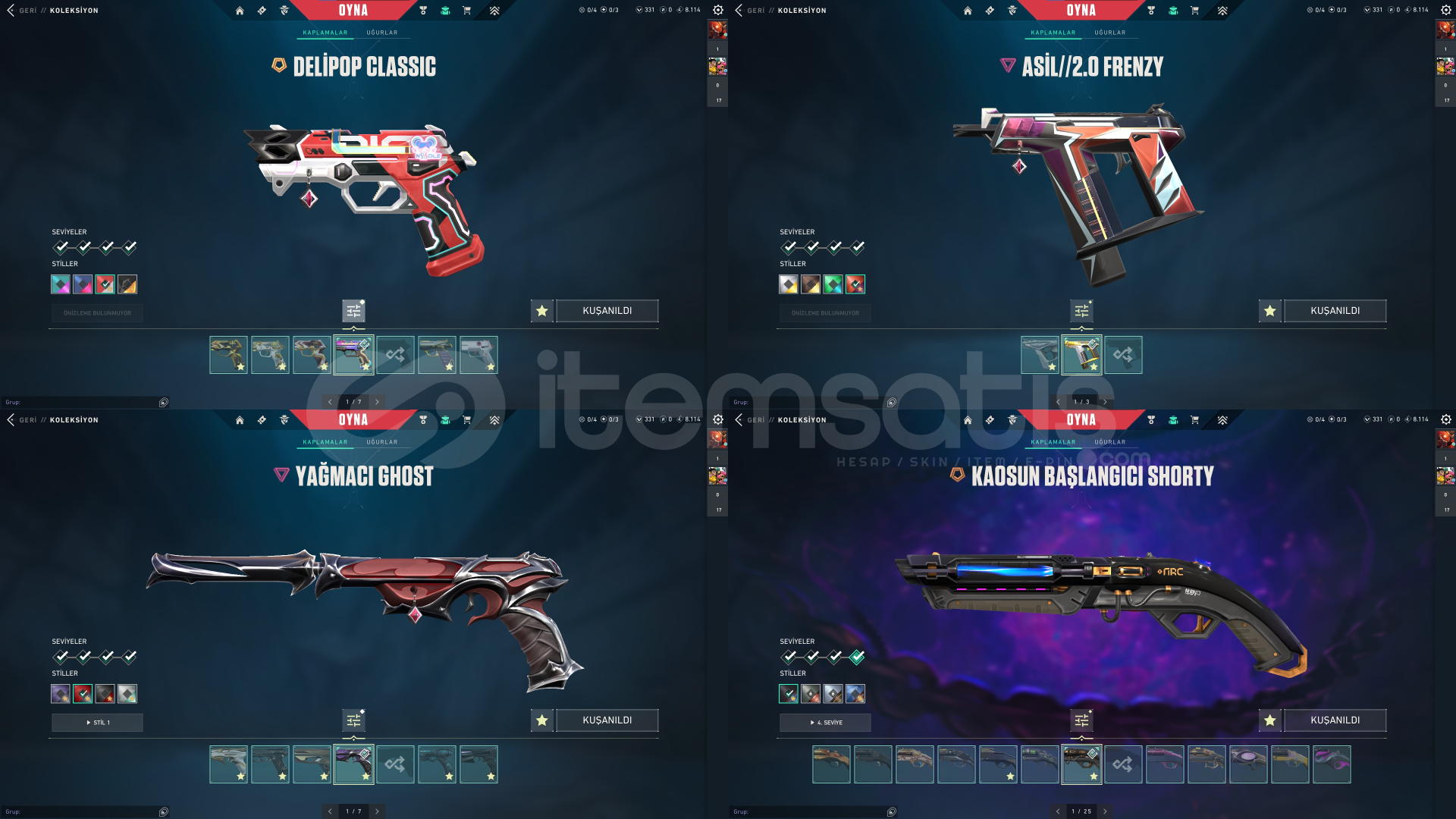 900 seviye, 600’den fazla premium skin, İMMO2 rank geçmişi.Ciddi alıcılar yazsın. Pazarlık makul düzeyde mümkündür.🎯 Skin Koleksiyonu (Özet)Classic (33) – Delipop, Asil, Spectrum, BBL, VCT 1–2Shorty (25) – Kaos, Yıldız BelasıFrenzy (28) – Asil, İyonGhost (37) – Yağmacı, Afet, Anomali, Fatih, Faz Koruyucu, UlupençeSheriff (35) – Yağmacı, Ar...