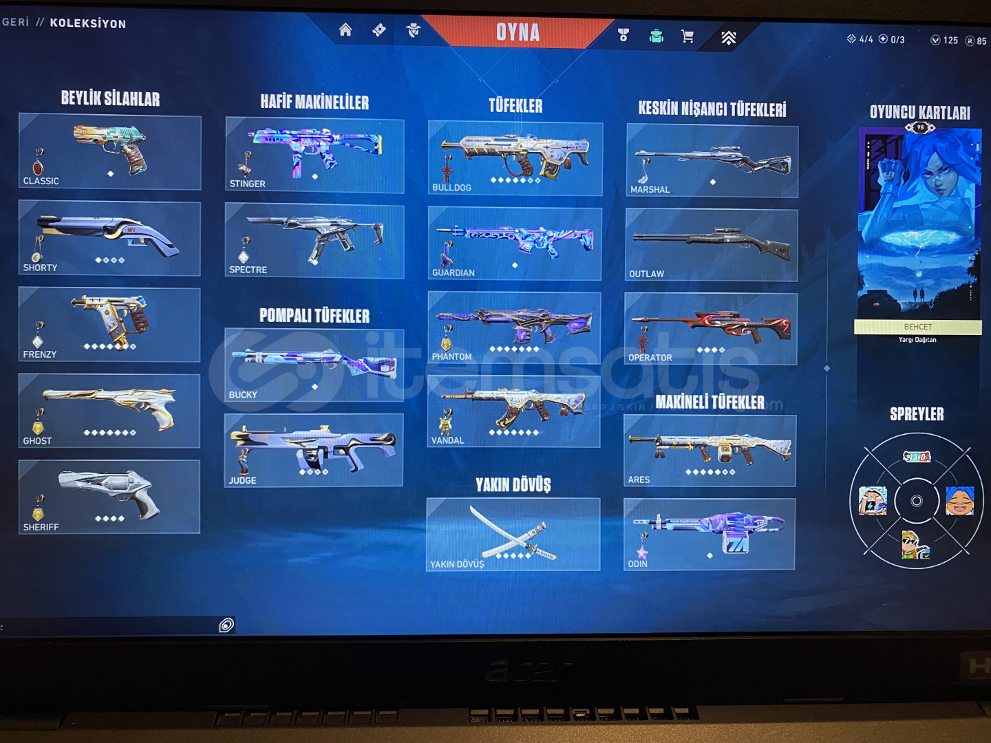 Valorant hesap onimaru kılıç Fatih ghost iyon sherif oni vandal yagmacı vandal afet phantom ve daha fazla skinli hesap