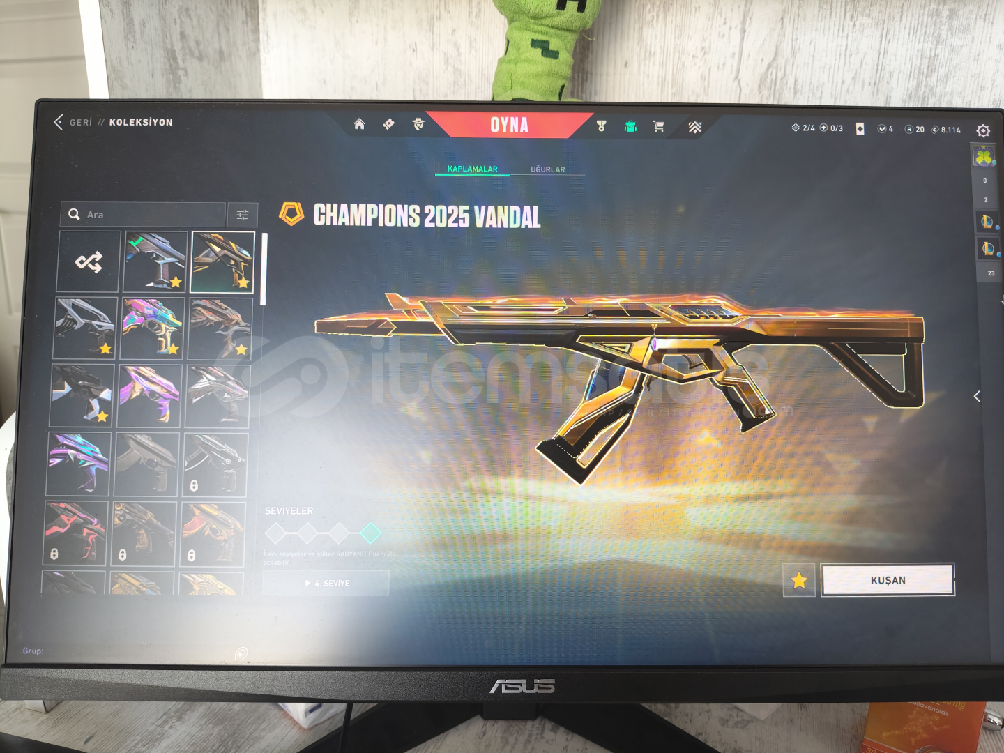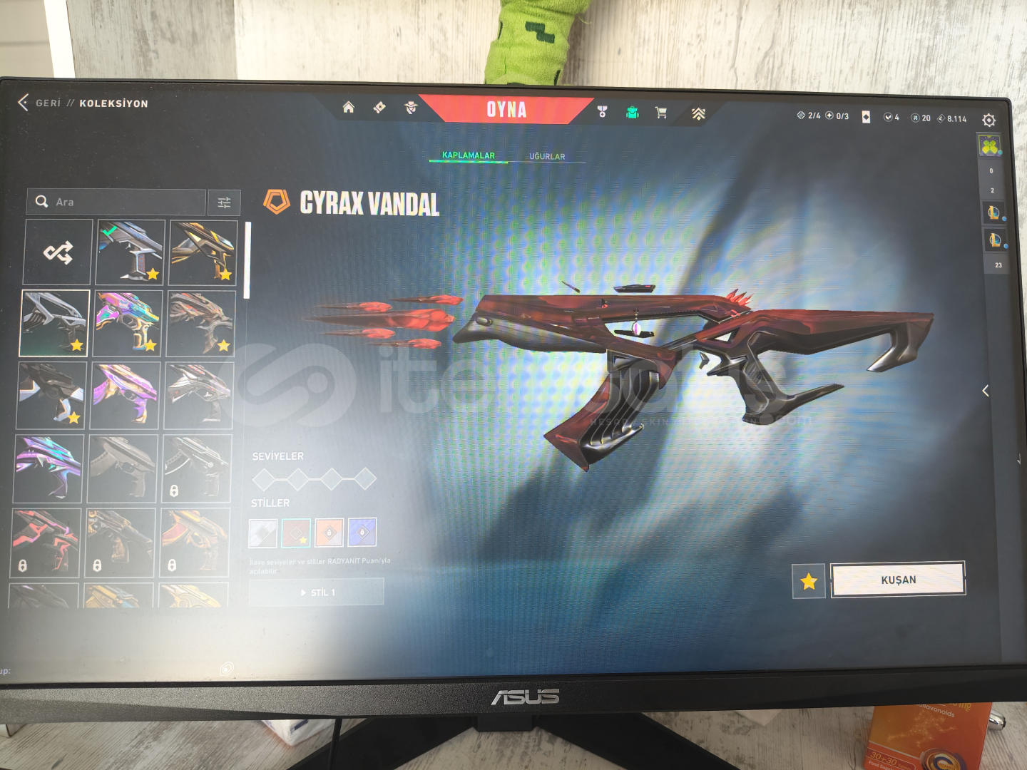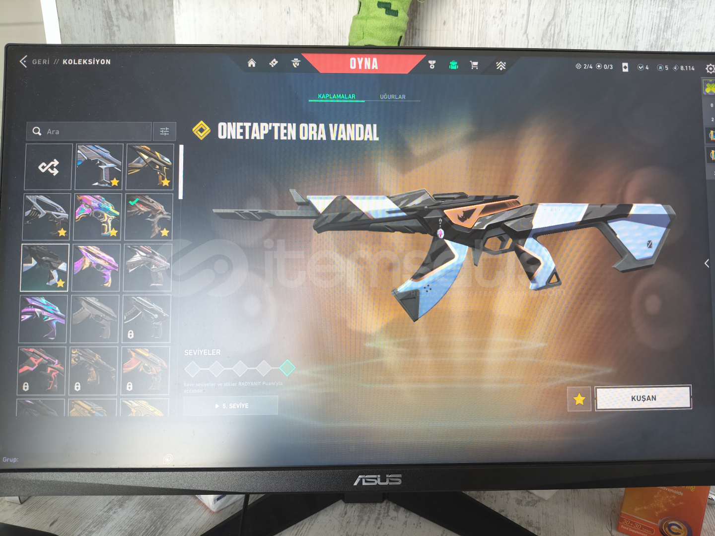 İçerisinde:Gen ClassicYağmacı GhostIşık Muhafızları ŞerifYağmacı SpectreAsil BuckySır Çiçeği JudgeKaosun Başlangıcı BulldogOni GuardianKaos PhantomNeptün PhantomFelaketin Kalbi VandalChampions 25 VandalCyrax VandalDelipop VandalKuronami VandalOra By Onetap VandalKaos OperatörKaraborsa KelebekVCT 25 KARAMBİT