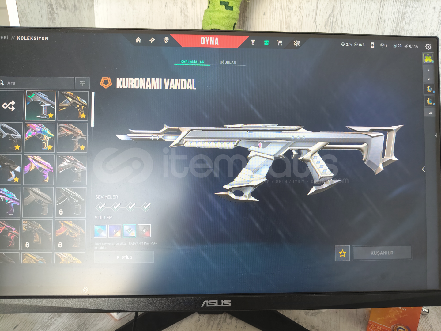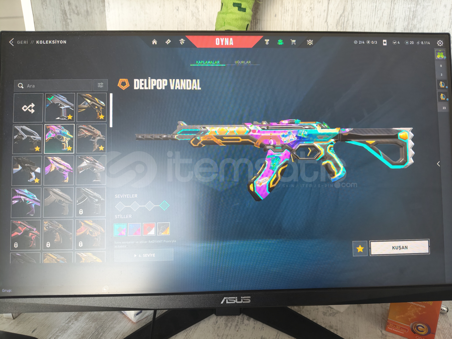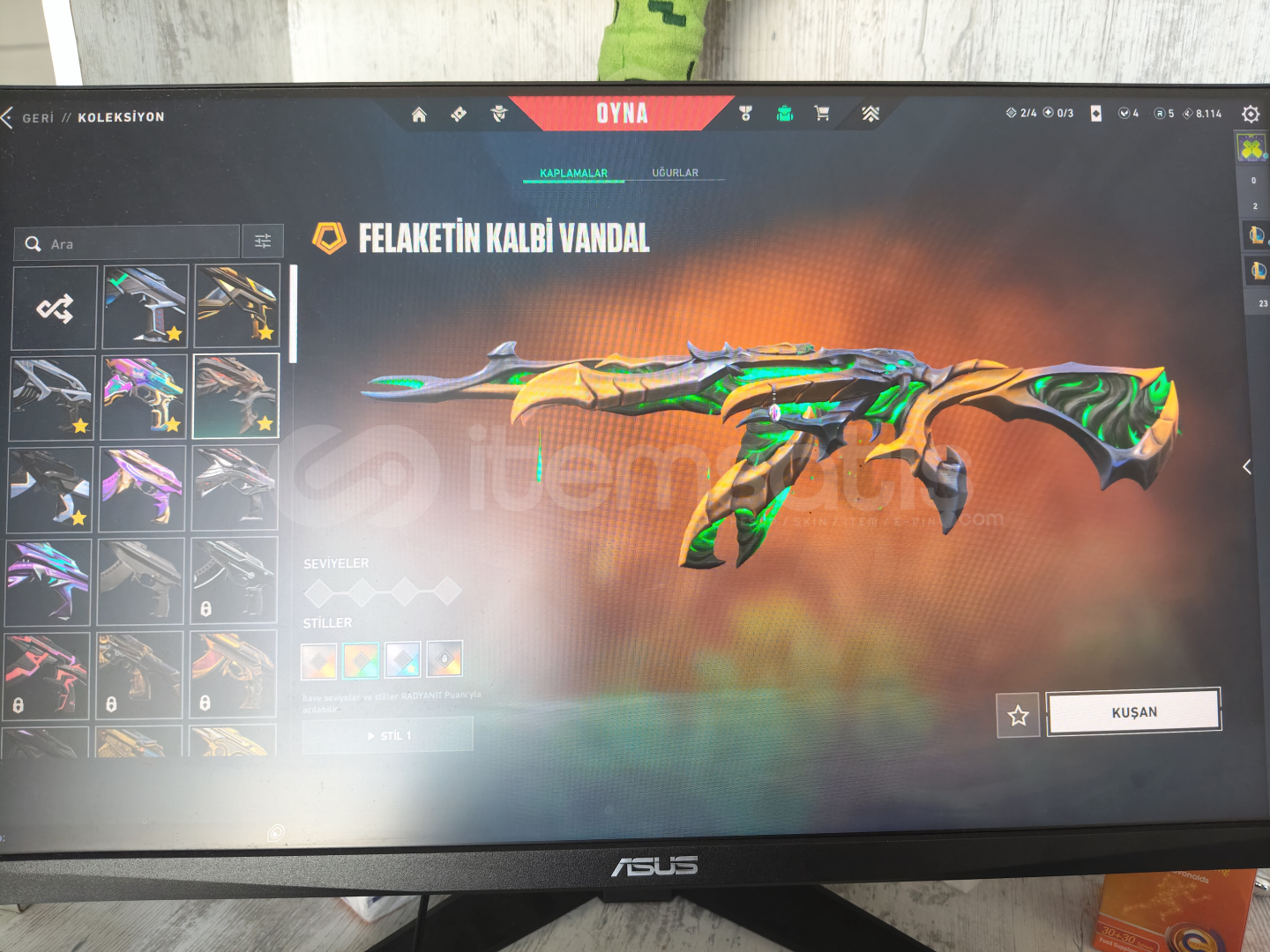 İçerisinde:Gen ClassicYağmacı GhostIşık Muhafızları ŞerifYağmacı SpectreAsil BuckySır Çiçeği JudgeKaosun Başlangıcı BulldogOni GuardianKaos PhantomNeptün PhantomFelaketin Kalbi VandalChampions 25 VandalCyrax VandalDelipop VandalKuronami VandalOra By Onetap VandalKaos OperatörKaraborsa KelebekVCT 25 KARAMBİT