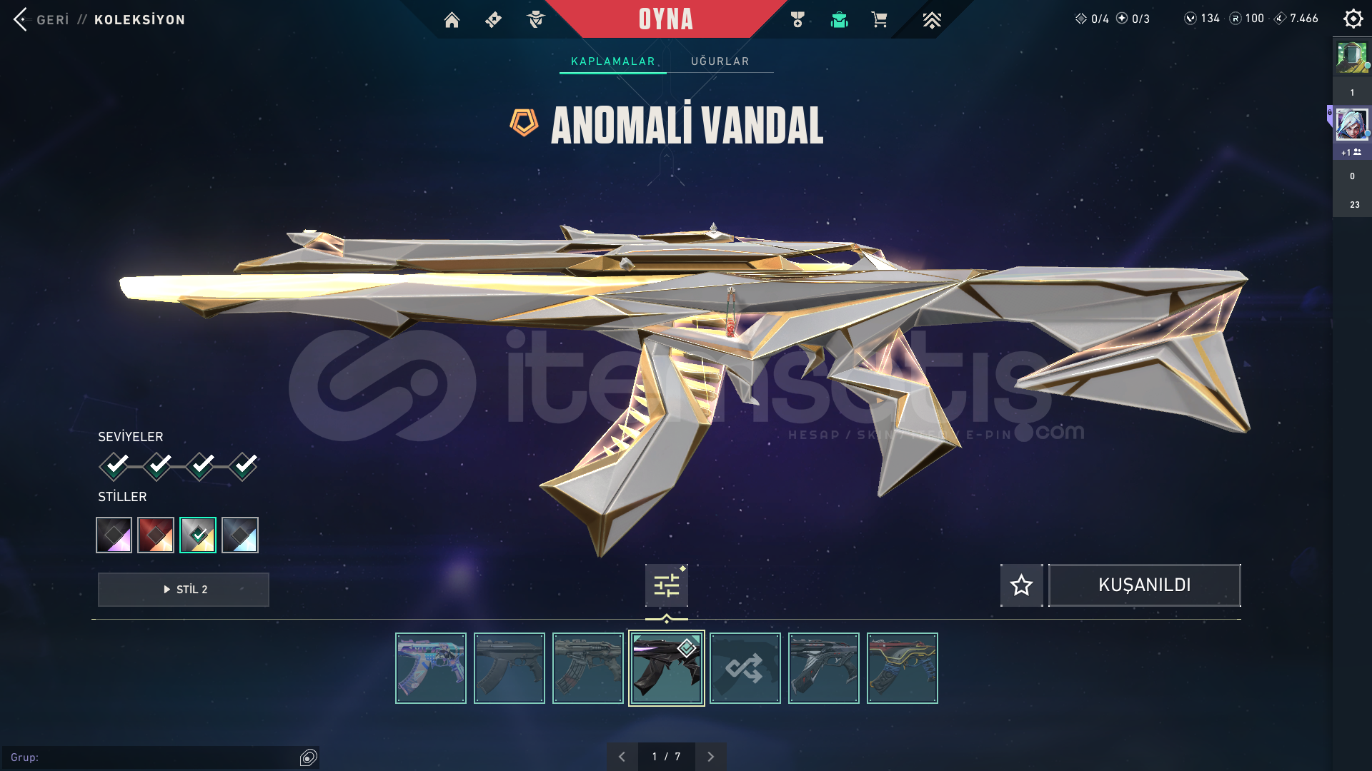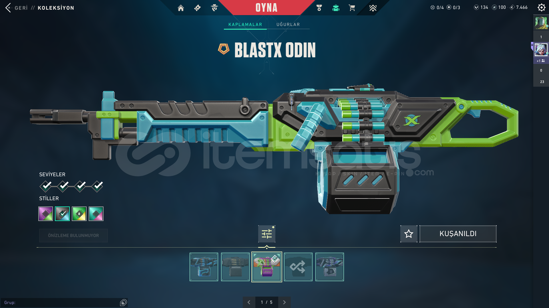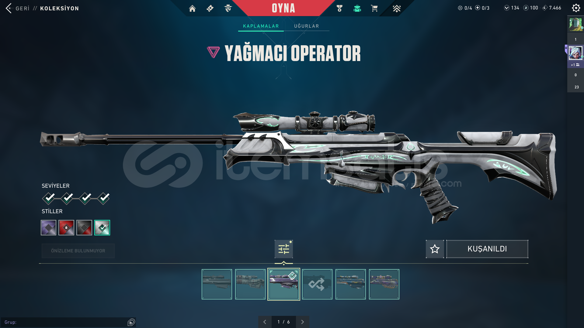 Acil ihtiyaçtan dolayı satılıktır. Rank yok oyunu oynamıyorum. 4 tane savaş bileti bitmiştir. Kasılmalık güzel hesap.Tabanca Skinleri: Kuronami Sheriff-Afet Ghost-Asil ClasicÖzel Harekat SpectrePhantom: Zifiri ve ProtokolVandal: Oni ve AnomaliYağmacı OperatorBlastx OdinKuronamı No YaıbaVeto hariç tüm ajanlar açık