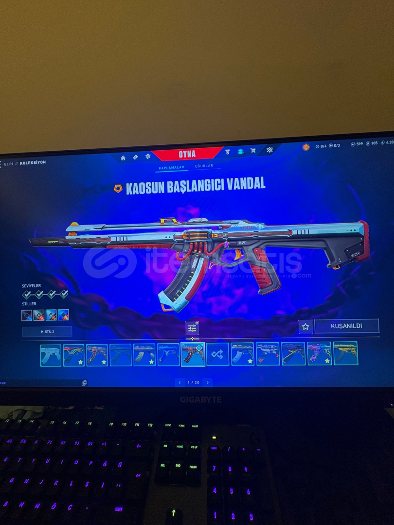 VANDALLAR : YILDIZ BELEASI - İYON - ASİL - KAOS - CHAMPİONS 2023 - DELİPOP - GAIA - EJDERİN BUYRUĞU - IŞIK MUHAFIZI - KÖKEN - NEPTÜN - ONİ - SİHİRPUNK - DOMİRİN İNTİKAMI ( VE SAVAŞ BİLETİ SKİNLERİ )PHANTOMLAR : ASİL - YAĞMACI - SPECTRUM - ONİ - ÖZEL HAREKAT ( VE SAVAŞ BİLETİ SKİNLERİ )BIÇAKLAR : VCT LOOK IN - AY YADİGARI - ONİ KILI...